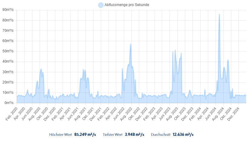 Beispielhaft misst ein Radar die Distanz vom Sensorelement bis zum Wasser. In der Cloud möchten Sie jedoch die Wasserhöhe visualisiert haben. Dazu können die Daten einfach umgerechnet werden.